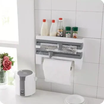 Multi-Function Kitchen Organizer: Wall-Mounted Wrap Cutter and Spice Rack