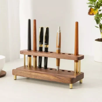 Elegant Black Walnut Wood Desk Organizer for Phones, Tablets, and Stationery
