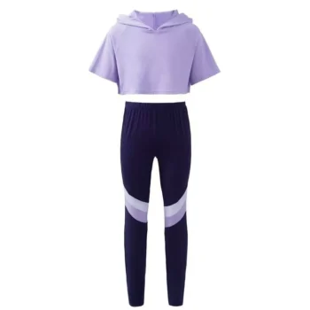 Girls’ Sporty Hooded Crop Top and Pants Set – Casual, Dance & Sportswear