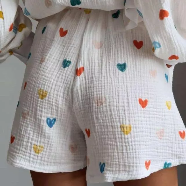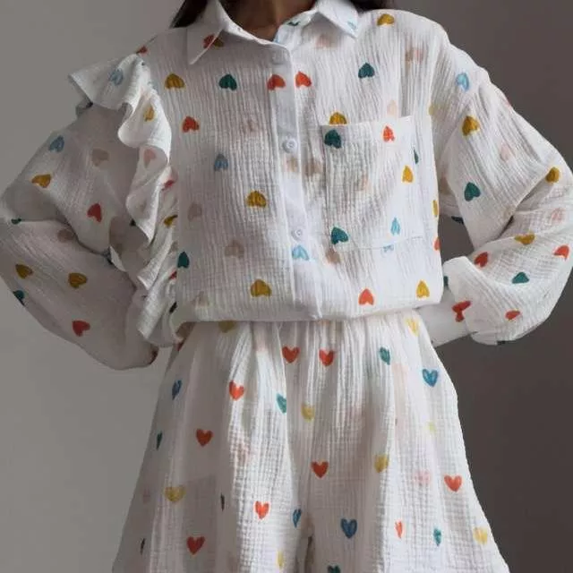 Aside from its stunning design and high-quality material, what truly sets this tracksuit apart is its attention to detail. The geometric pattern combined with the ruffle love decoration adds a unique touch, making it more than just a casual outfit. It’s a fashion statement. The blend of functionality with a trendy design ensures you don’t have to compromise on style or comfort, making it a must-have in your summer wardrobe.