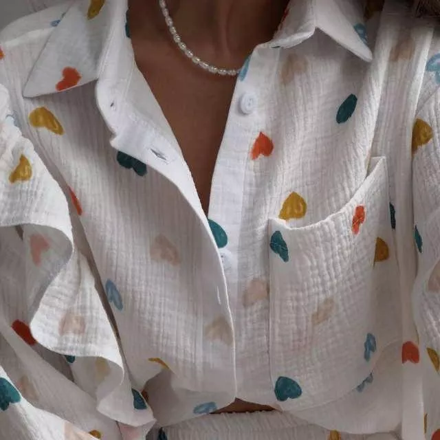 Introducing the ultimate summer ensemble that combines comfort, style, and versatility. Our Summer Casual Cotton Tracksuit for Women is designed for the modern woman who values both fashion and practicality. Crafted from premium cotton with a hint of stretch, this two-piece set promises to keep you comfortable and chic throughout the warm season. Featuring a geometric pattern and adorned with a playful ruffle love print, it’s the perfect outfit for middle-aged women looking to add a touch of youthful flair to their wardrobe.