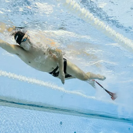 Just put the belt around your waist and start your workout! The parachute makes the movement in the water harder, and you become a better swimmer.