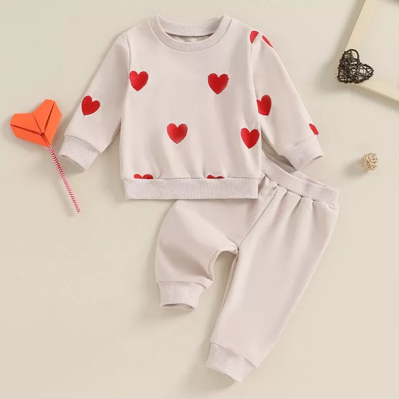 Toddler Heart Embroidery Outfit Set 6M-4T