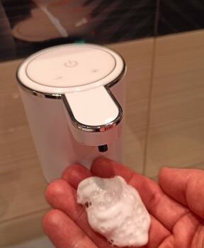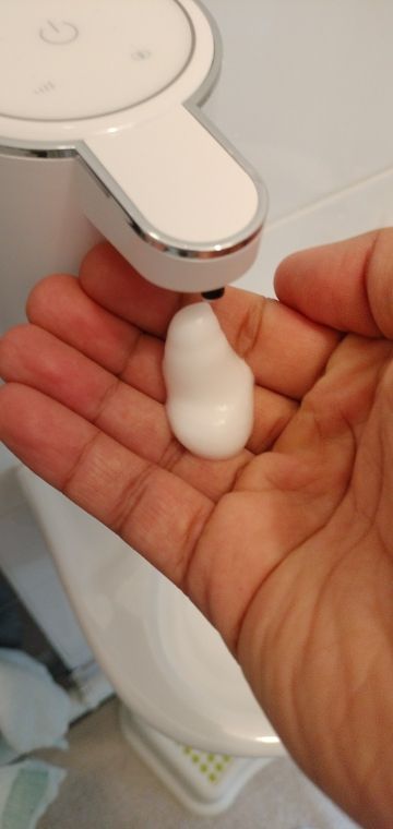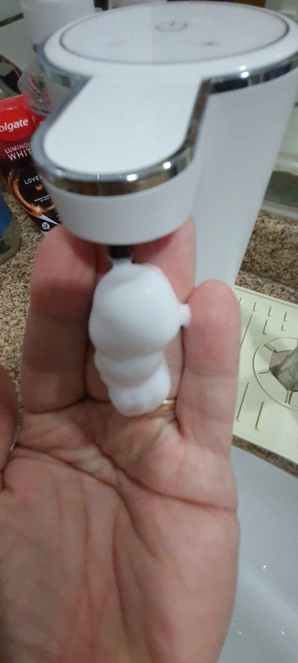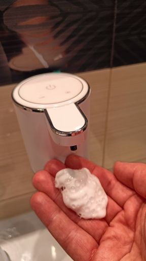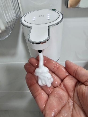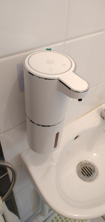 The dispenser is aesthetically made of good materials. When one part of a regular liquid soap is mixed with three parts of water, a nice foam comes out. There's enough of her on the other ooze to successfully wash her hands.