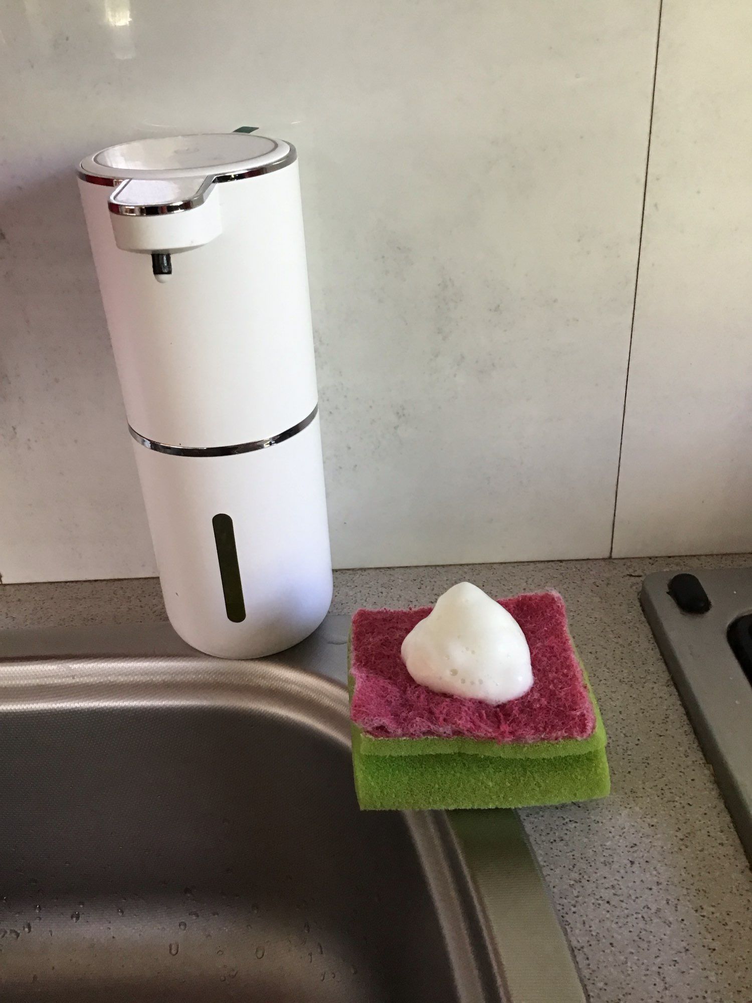 The liquid dispenser is super. I add water to the dishwashing liquid and then foam forms. The dispenser is made aesthetically. I recommend.