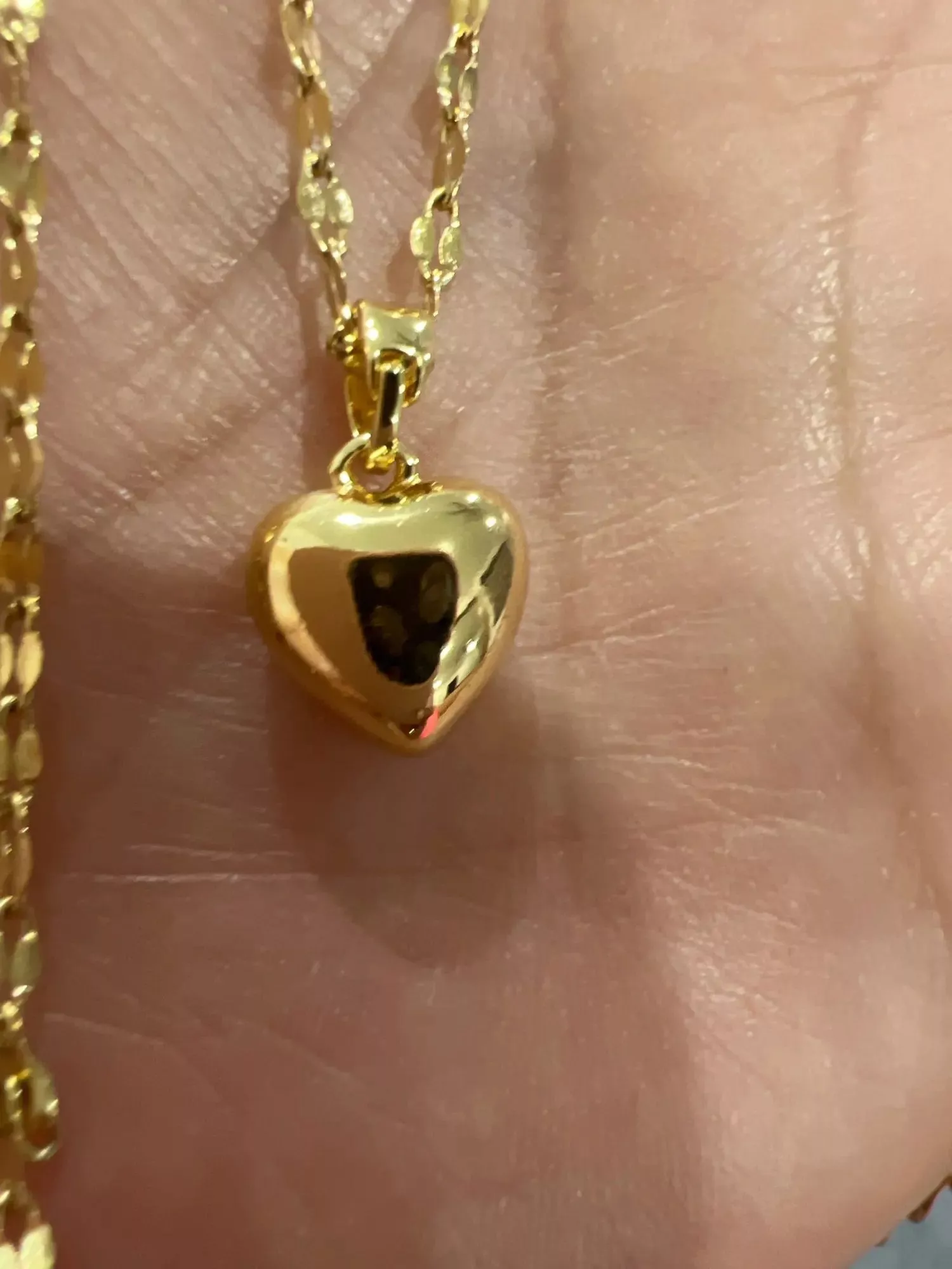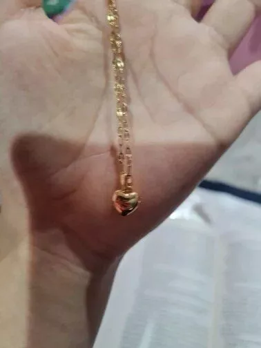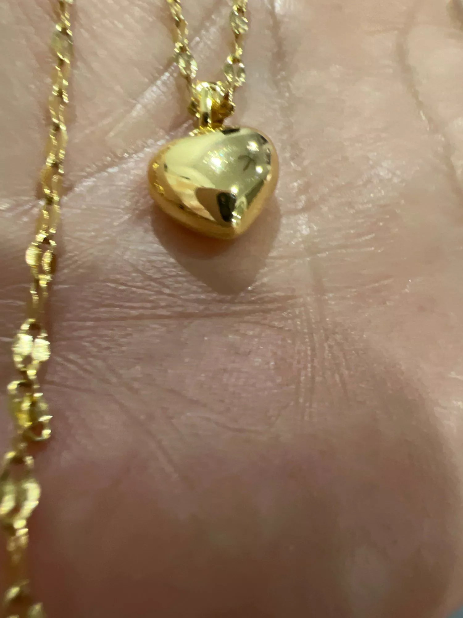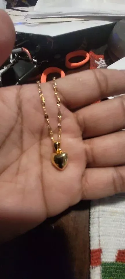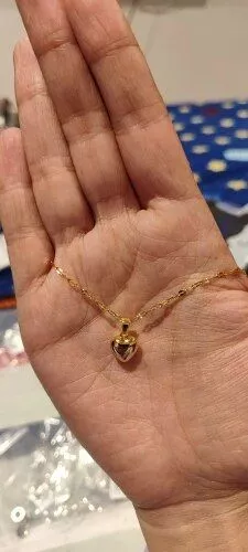 It's cute, small heart, elegant, I 'd buy it again. Gold beautiful
