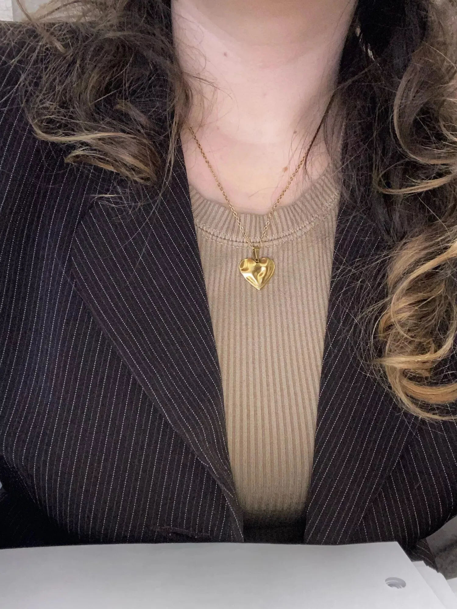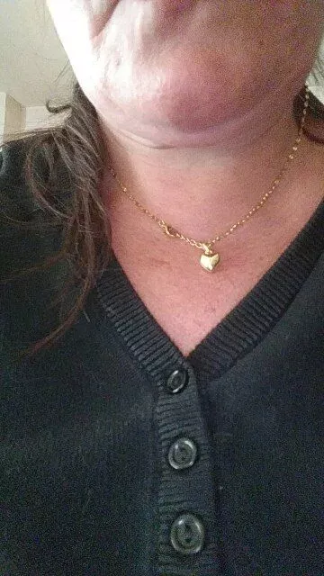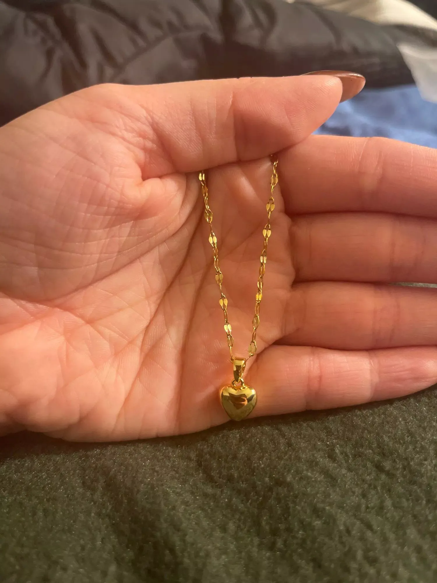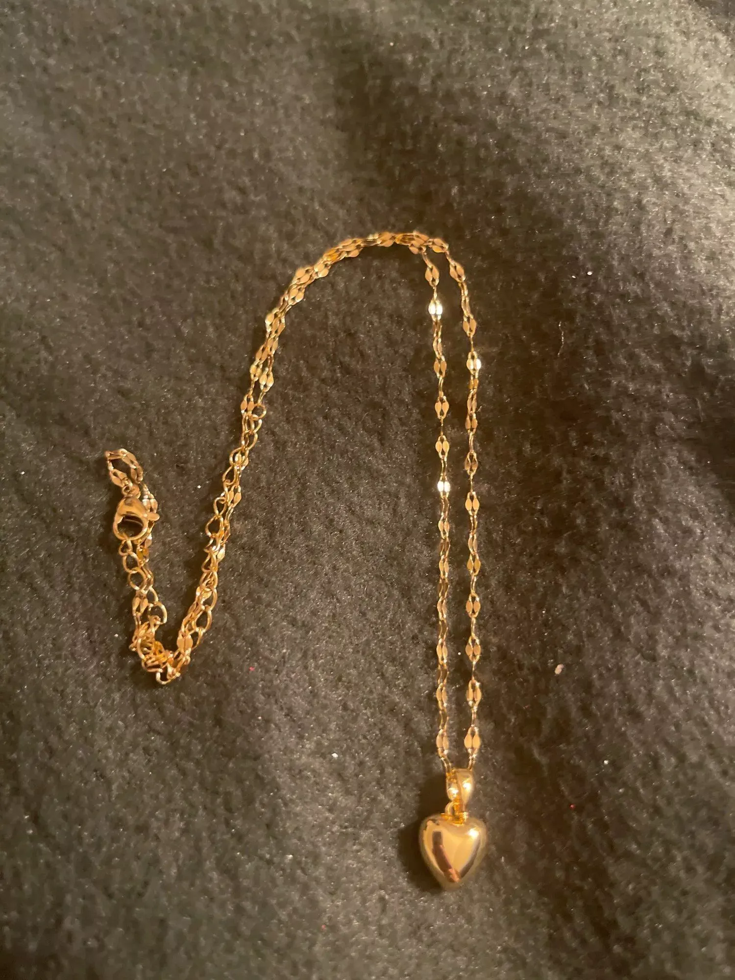 It's cute, small heart, elegant, I 'd buy it again. Gold beautiful
