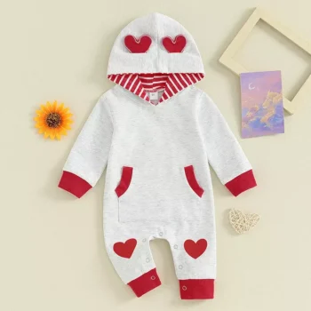 Baby Girls’ Valentine’s Day Heart Print Hooded Romper