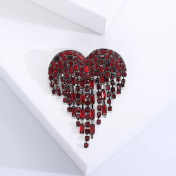 Red Tassel Heart Rhinestone Brooch Pin