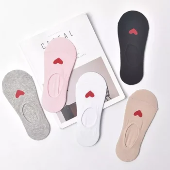 Love Heart Silica Gel Non-slip Boat Socks for Women