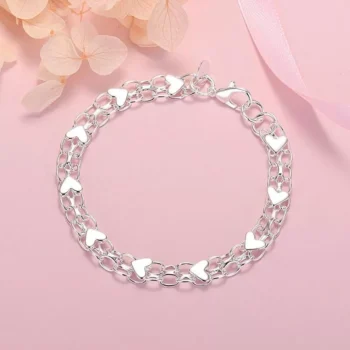 Luxury 925 Sterling Silver Heart Charm Bracelet for Women