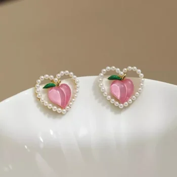 Charming Peach Heart Pearl Earrings