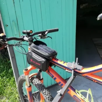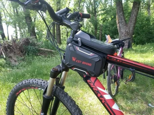 Overall it’s a great idea! I have a 26” mountain bike and I’m 5 8”. When I ride my knees hit the sides of the pouch. It’s also difficult to see the screen of your phone while riding.