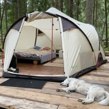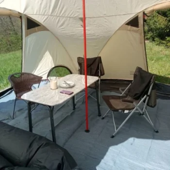 This luxurious camping tent is a marvel of design and functionality. Its spaciousness allows for comfortable group gatherings, while the sturdy construction ensures we’re protected from the elements. The three doors add a level of convenience and privacy we didn’t know we needed.